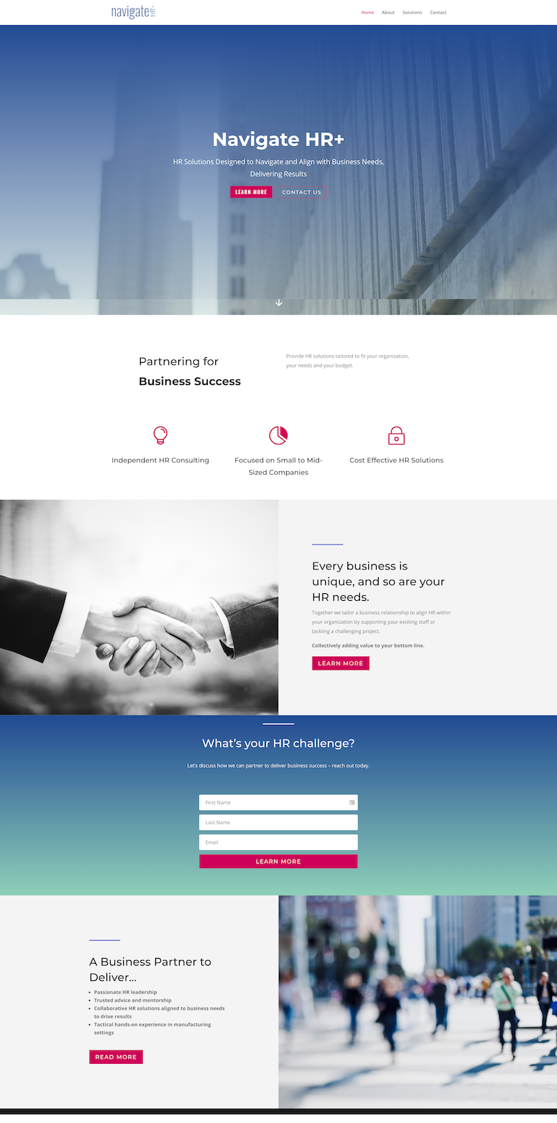 Navigate HR+ now has a beautiful website which caters directly to their target audience. With a clean architecture, the website features a clear visitor path for potential customers.